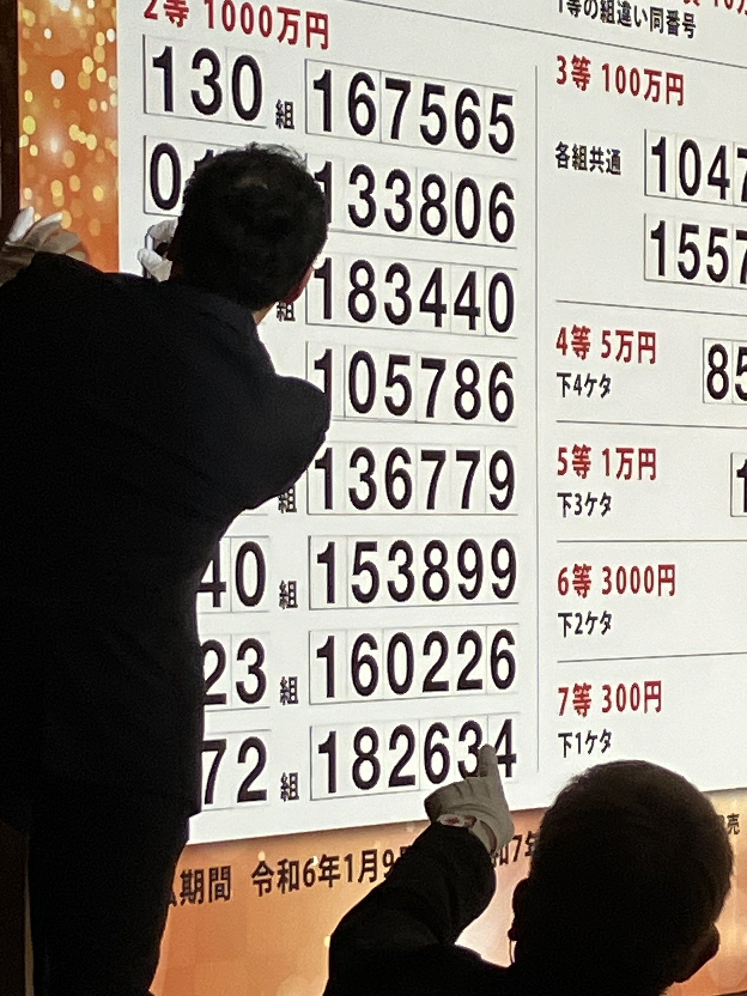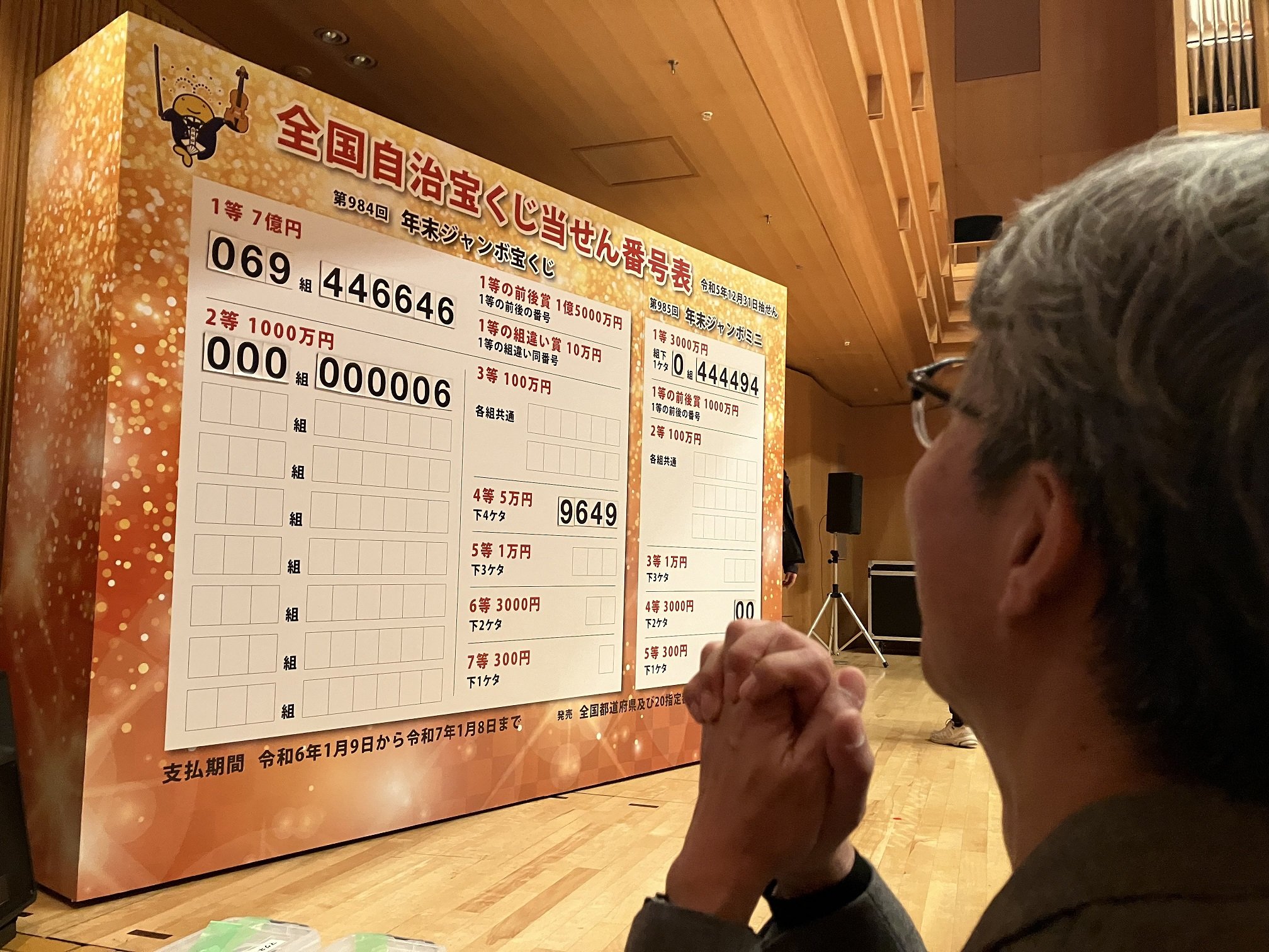 2024年は、ドリームジャンボ宝くじ、年末ジャンボ宝くじと2回、抽せん会を担当する予定です。「一回くらいは…。いかんいかん。今年も地道に頑張るぞ~」と、毎年のように調子のいい松尾アナでした。