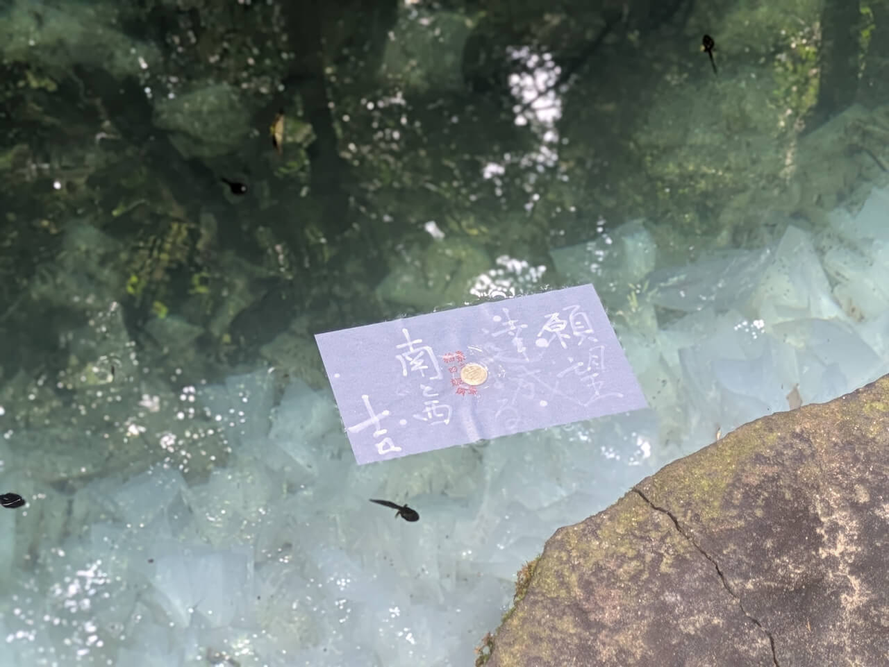 水に浮かべると同時に紙に浮かび上がる文字も、ご縁を占うキーワード。私が占った時は「願望達成する」の一文が浮かび上がり、背中を押される気持ちになりました。