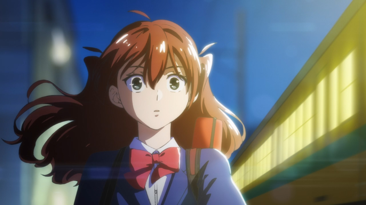 と、ここまで一途に音楽を作り上げる部活パートが続いたと思ったら、いきなり青春パートがキターーーーーー!!! 同じ電車に乗り合わせていたりっちゃんと一緒に自宅近くの駅で降りた青野くん、帰り道、あの踏切に差し掛かります。そう1年前の中学時代、青野くんにヴァイオリンを教えてもらっていたりっちゃんが、指先の皮が硬くなっていると告げながら、からかおうとして「触ってみる?」と手のひらを差し出した、あの踏切です! 1年前と同じように「ほら!」と差し出された指先が、今回は確かに触れ合って……。
