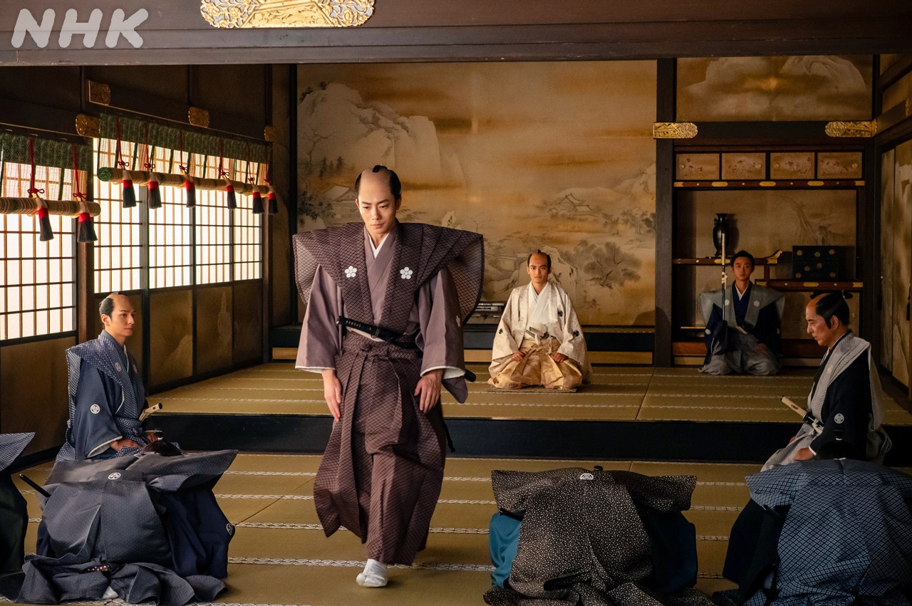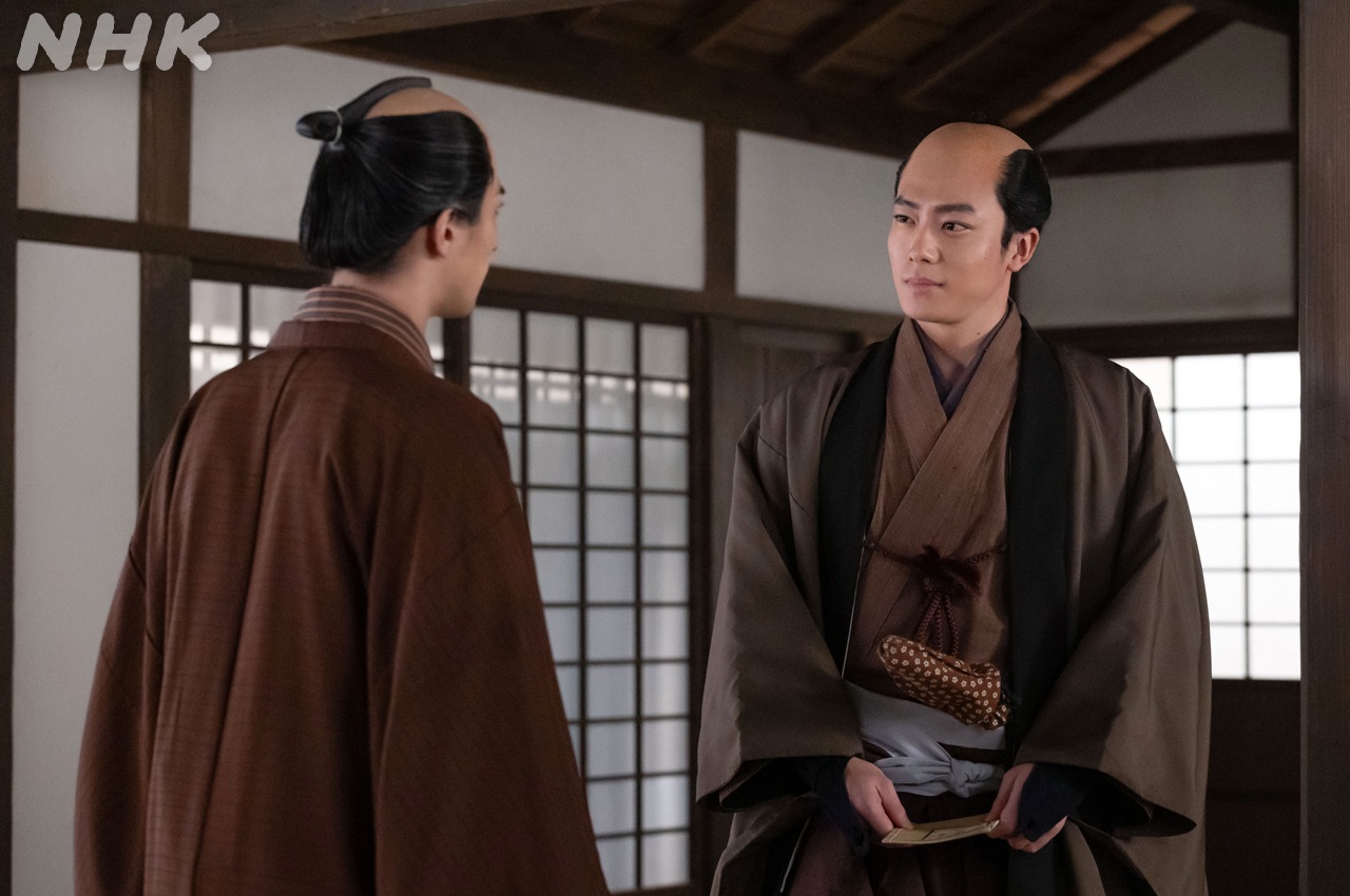 (耕書堂へ入った)最初の一歩目、蔦重は後ろにいるので、定信の顔は見えていない。もちろん定信としても後ろの蔦重に表情を見られていないというのも分かっている。「やばい、出ちゃってるよ定信!」と、視聴者の方がツッコみたくなるぐらいの温度感を目指しました。