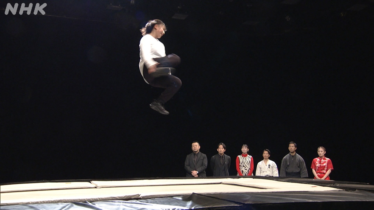 足にボードが固定されている状態で姿勢を制御し、空中で繰り出すダイナミックな回転技で観るものを圧倒するスノーボード・ハーフパイプ。滑走してブレなくトリック(技)を決めるには精緻な重心操作が必要だ。空中で回転する時は体の軸を保ち腕の力で回転力を生み出す。スタジオではトランポリンを使ったオフトレをとおして、トップ選手の身体操作を紐解く。