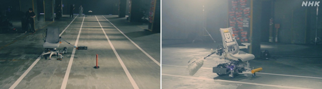 両チームとも時速40キロ程の速さで、数秒で走りきる目標。いよいよマシンを組み立て、チェアに手をつけ走ってみると……各パーツではできたことが、すごい速さでは連携してできず、マシンが壊れ始める。あまりの壁の高さにエンジニアたちは悶絶し、夜会(本番日)が近づいていく。
