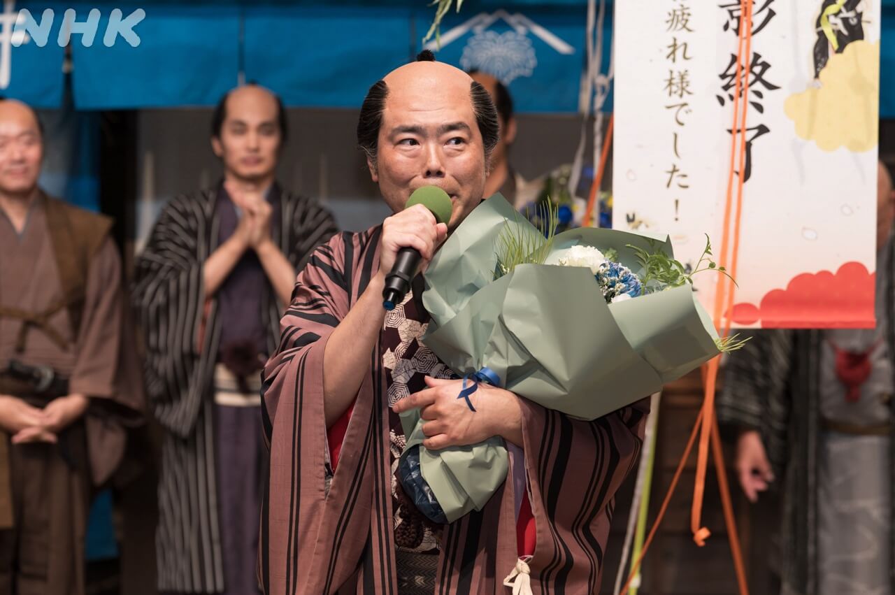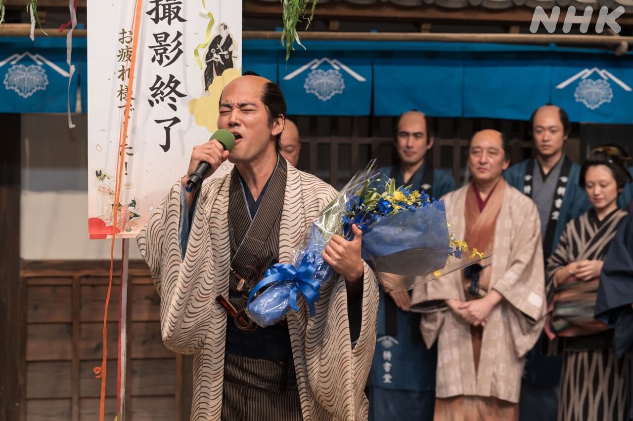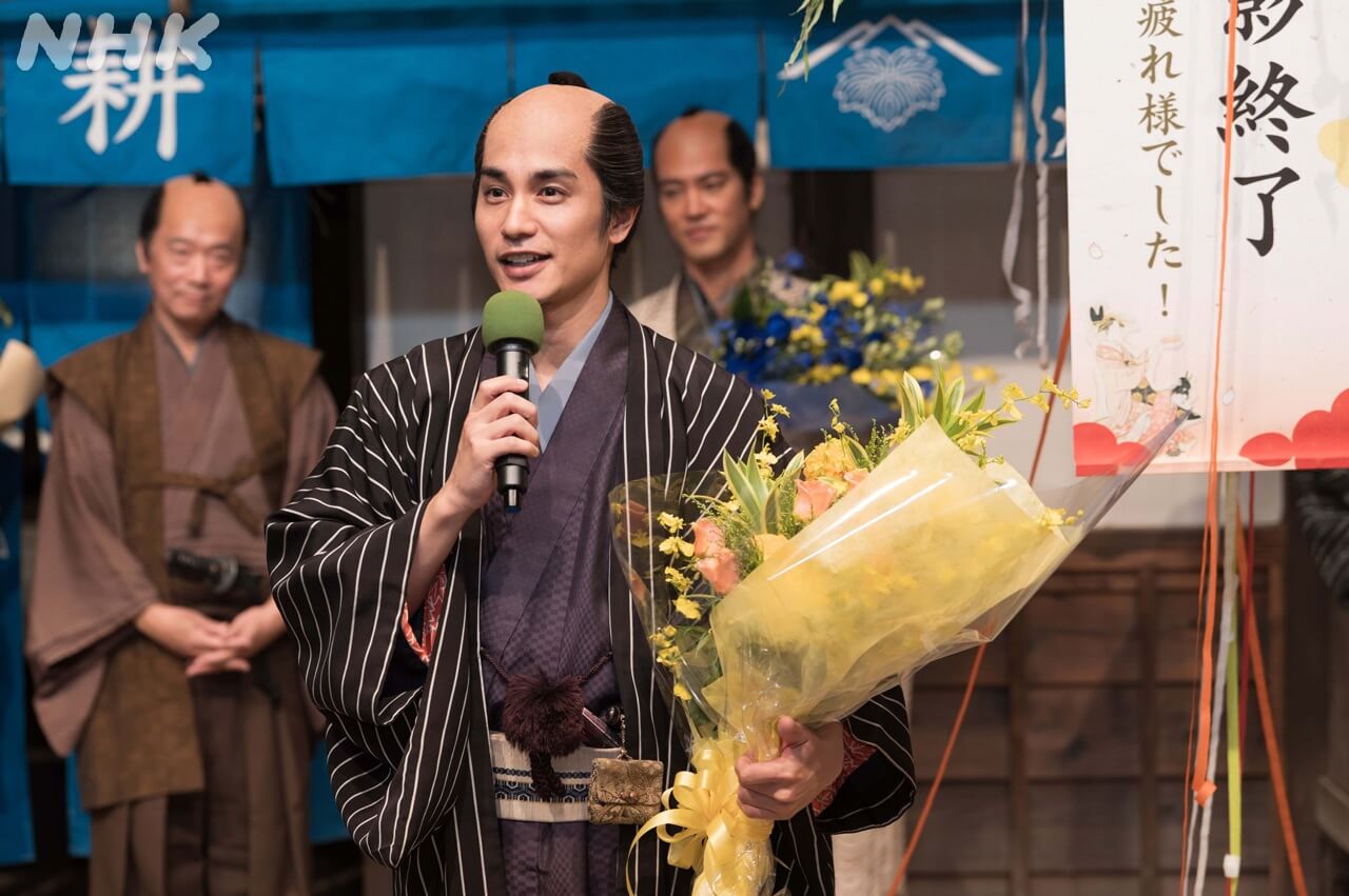 最初の役名はただの「家臣」だったんですが、「水野為長」と言う名前をいただきまして、最終回まで出させていただいて、本当にありがとうございます。しかも殿(松平定信)と一緒にクランクアップという!本当に小さい頃から殿を見てきたので、本当にうれしいです。感慨深いものがあります。