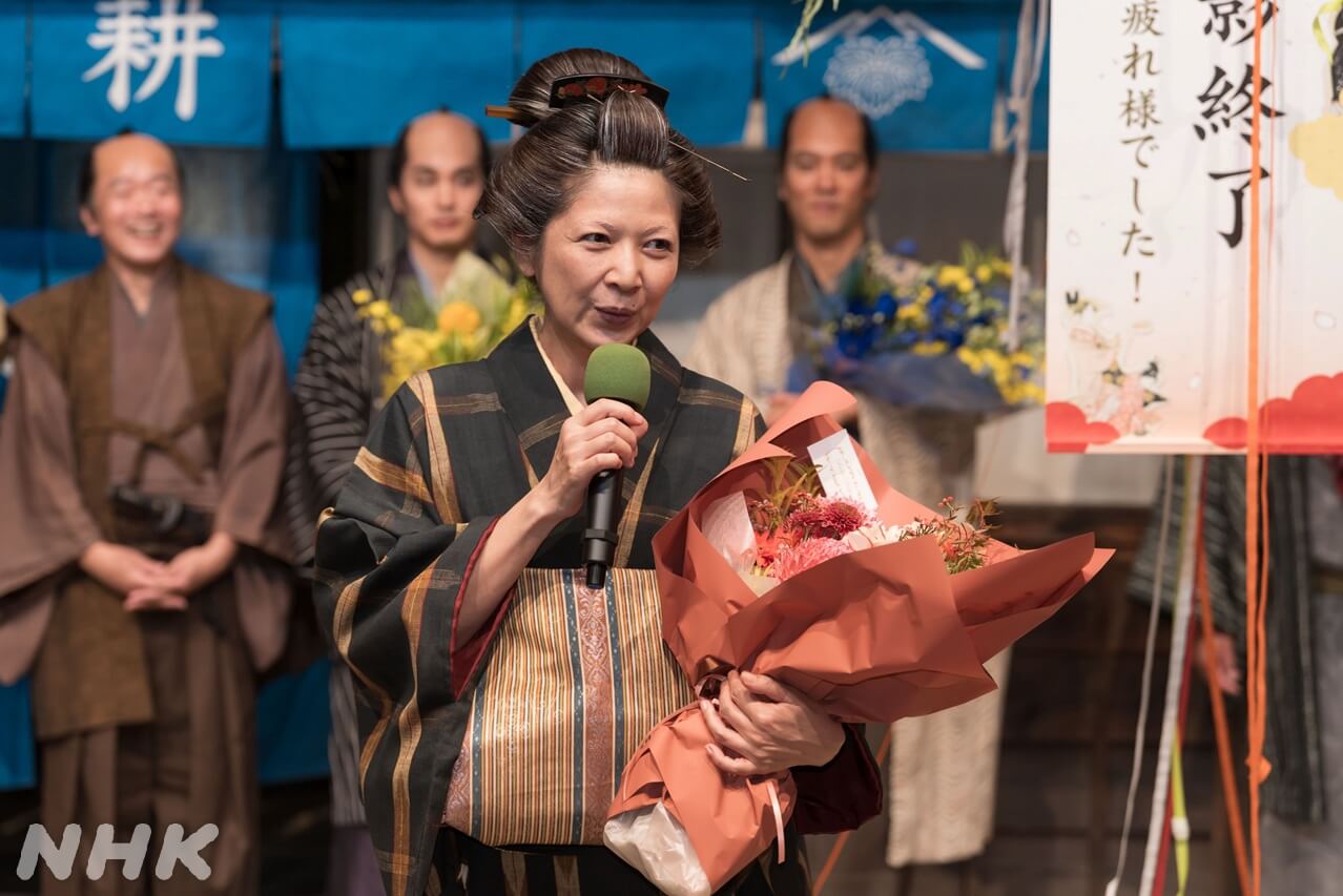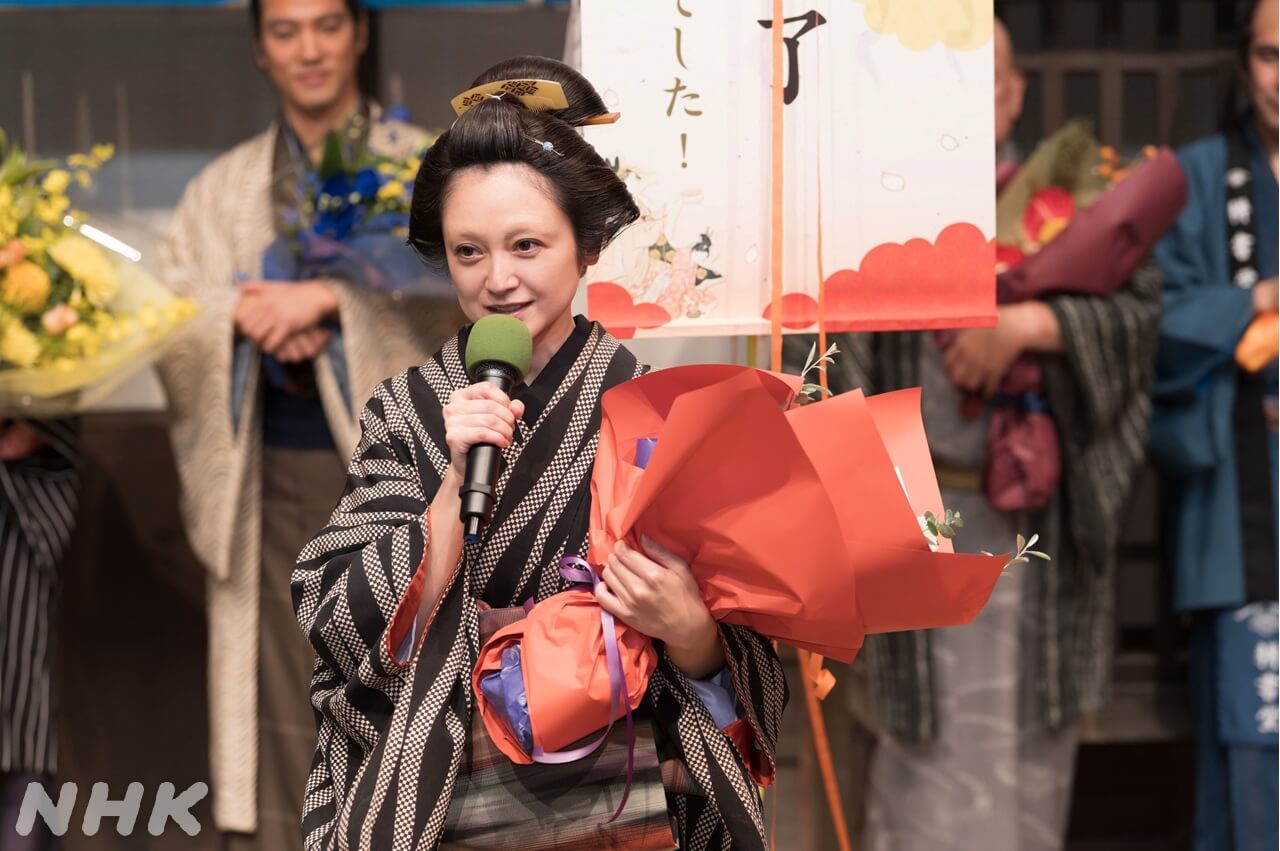 流星くんが本当にすばらしい座長さんだったなと思います。スタッフの皆様、そしてキャストの皆様、長いことお疲れさまでした。じつは私も数か月前に一旦クランクアップしていまして、今回2度目のお花をいただきました。どうもすみません。私は初大河ドラマ、初時代劇でとても緊張していました。ただ、この日本が誇る大河ドラマというすばらしいドラマに出させていただき、本当に感謝の気持ちでいっぱいです。ありがとうございました。