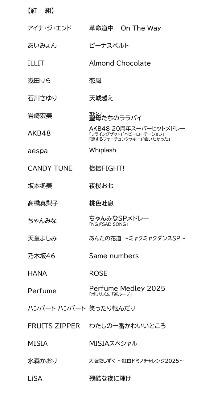 現在放送中の連続テレビ小説「ばけばけ」の主題歌「笑ったり転んだり」を歌う、夫婦で活躍するデュオ・ハンバート ハンバート。朝ドラから主人公・松野トキ役の髙石あかりさん、そして後の夫となるヘブン役のトミー・バストウさんが“夫婦”で応援に駆けつけます! さらに「ばけばけ」のオープニング映像で話題を呼んでいる写真家・川島小鳥さんによる、紅白だけの未公開写真もお届けします!