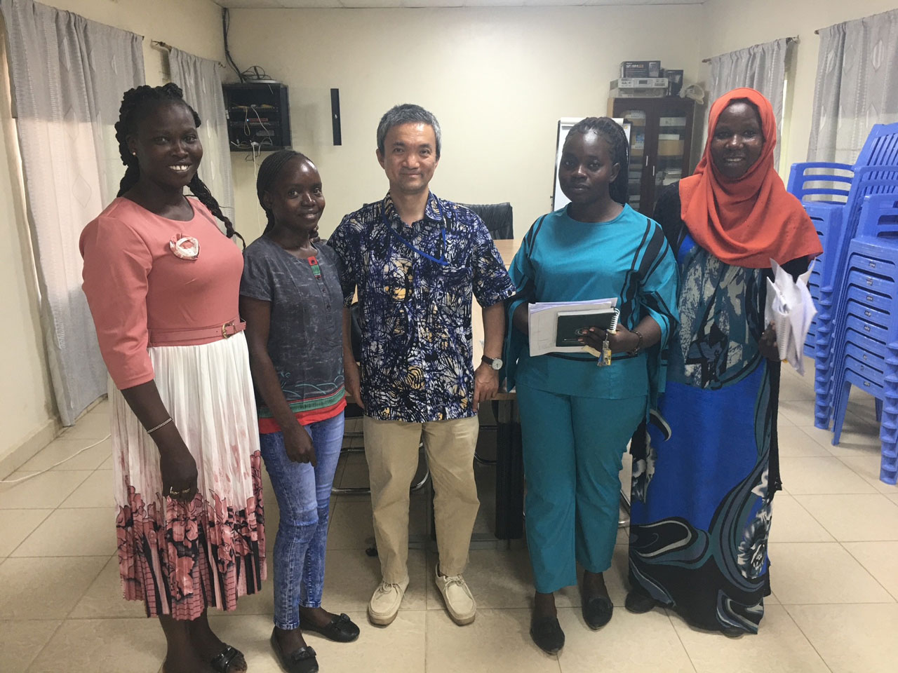 最初の仕事は、事務所を支えてくれる南スーダン人スタッフ4人との顔合わせだった。事務所運営資金の管理、物資調達、衛生管理、SSBCとの連絡調整など、彼らは事務所を支える重要な存在だ。
