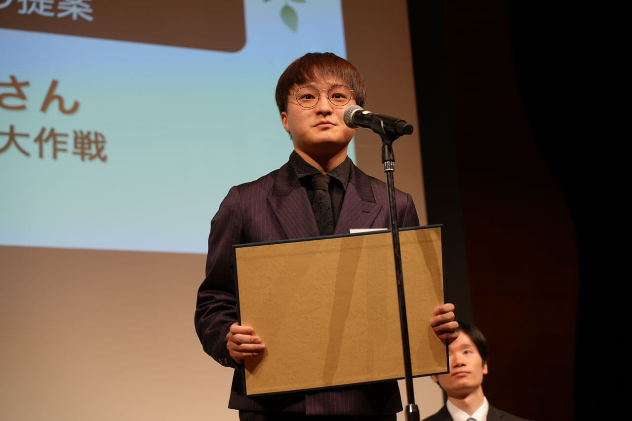 続いて表彰式が始まりました。今年度は10代から60代まで幅広い世代から過去最多の246件の応募があり、その中から選ばれたアイデアが表彰されました。