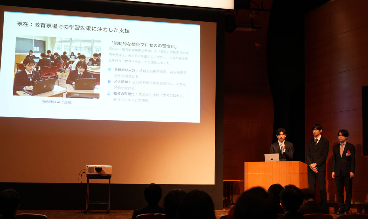 今回の応募作品には、批判的思考力の育成や情報のリスク成分表示、ユーザー主体の学び、多様な視点の導入など、実社会への応用を意識したアイデアが数多く見られました。