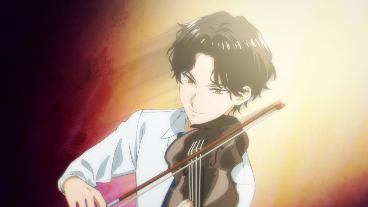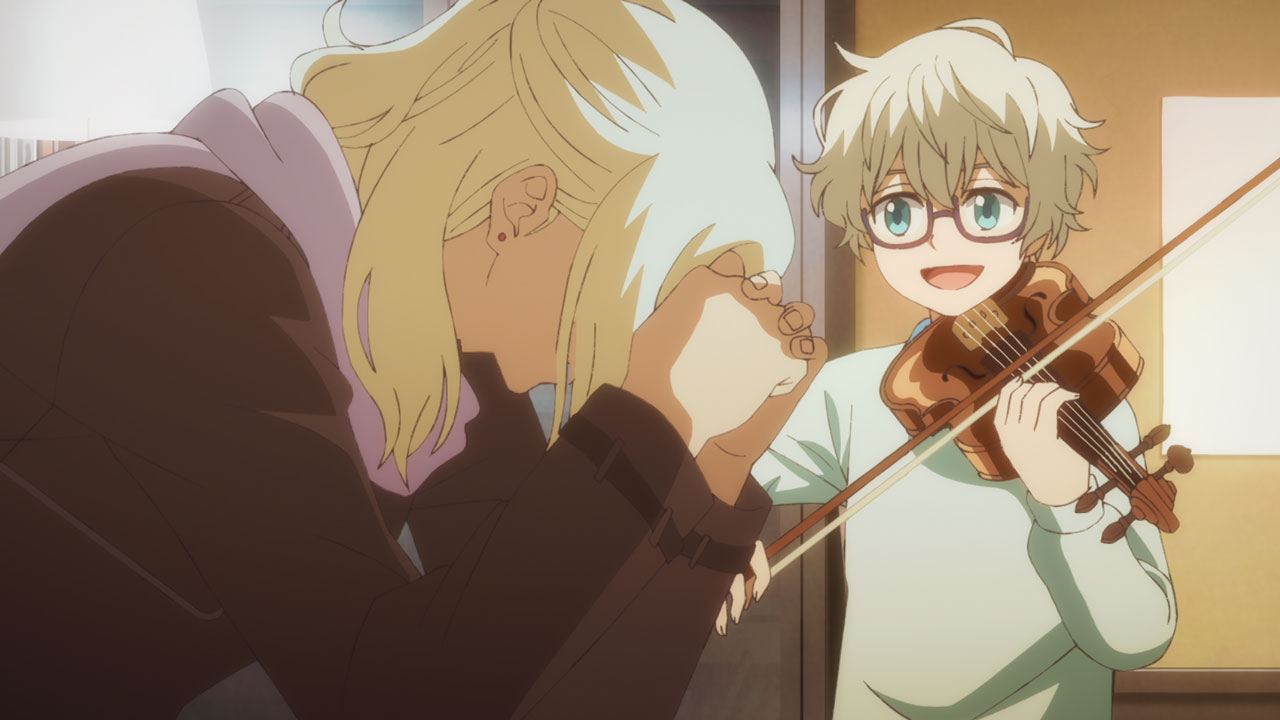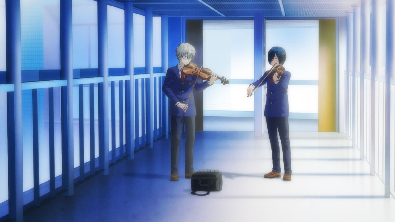 青野くん(青野一/声:千葉翔也)を練習に誘った佐伯が、渡り廊下で一緒に演奏する「アヴェ・マリア」。青野くんも驚くほど柔らかなヴァイオリンの音色に、オリビアや幼なじみのマリー(声:小山内怜央)と過ごしたドイツでの記憶が重なって……。