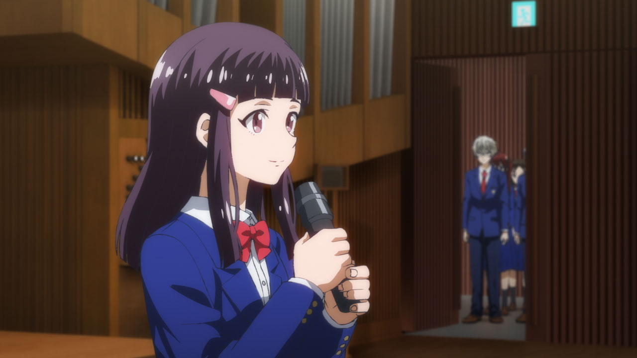 続く第14話「クリスマスコンサート」は、会場である教会特有の残響音も魅力的なコンサートの模様をたっぷりと。全国コンクールに続く、音楽メイン回ですね。合唱部もオーケストラ部と同様、全国屈指の強豪。その精鋭たちにオケ部が合唱で参加した「もろびとこぞりて」、オケ部の演奏と合唱部の歌唱による「アヴェ・マリア」、そしてヘンデルのオラトリオ『メサイア』から「ハレルヤ・コーラス」の3曲という、クリスマス・ムード満点のセレクションでした。司会を務めた合唱部部長・本郷しほり(寿美かのん)先輩による楽曲解説もいい感じで、流れる音楽を聴いているだけでも満足度が高く、心が洗われた方も多かったのでは?