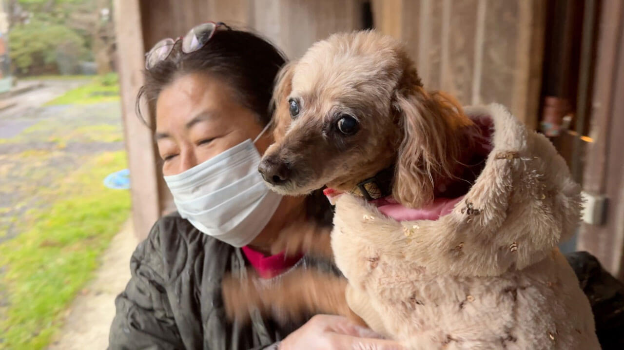 中半壊した家には犬7頭を残したままです。翌日から坂谷さんは、水と食料を詰めたリュックを背負い、避難所から自宅まで、犬たちの世話に通う日々が始まります。「あちこちで土砂が崩れ、道路が寸断していたので、海岸線を迂回したり、斜面を越えたり、3時間近くかけて通いました。大変な日々でしたが、犬たちに会いたい一心でした」。坂谷さんは、再会を喜ぶ犬たちの姿に癒やされながらも「平凡な日常が奪われた悲しみがこみ上げてきました」と当時を思い起こします。