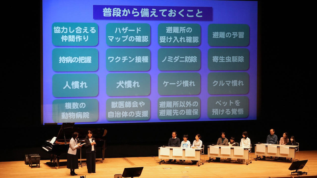 能登半島地震から2年。当時、飼い主たちはどんな困難に見舞われたのか、ペット救護はどのように行われ、どんな課題があったのか。ワークショップでは、能登半島地震の被災者や関係者の証言をご紹介し、今後の備えに生かします。会場では、山下さんや小坂さん、坂谷さんの体験も、インタビュー動画を交えて詳しくお伝えします。
