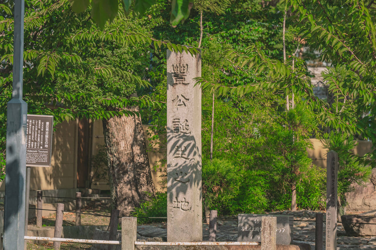 園内には秀吉がこのあたりで生まれたことを示す、「豊公誕生之地」と刻まれた石碑が。