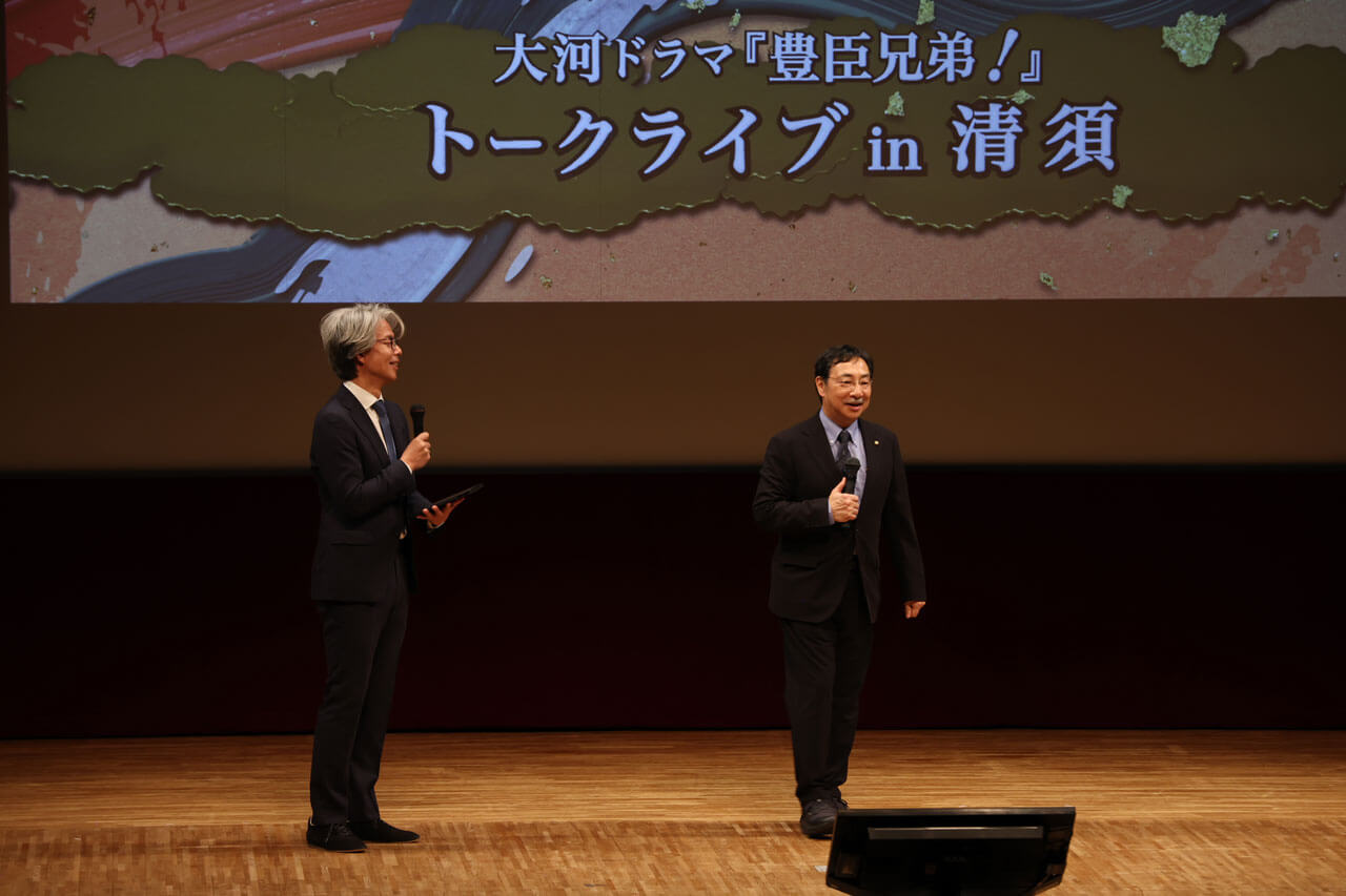 1月17日(土)、愛知県清須市の春日公民館大ホールで、大河ドラマ「豊臣兄弟!」に関連したイベント『大河ドラマ「豊臣兄弟!」トークライブ in 清須』が開催されました。事前申込制ながら定員を超える応募が寄せられ、地域のみなさんの関心の高さがうかがえます。NHK財団ではこのイベントの企画を担当しました。