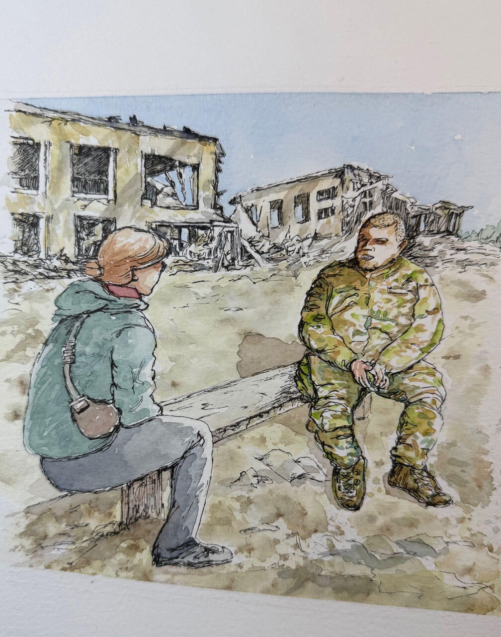 SUSPLINEの職員は約3,500人で、このうち約160人が兵役に就いているそうだ。負傷して職場に復帰する人も多い。戦地で両足を失った編集者が「風で足元が寒いから窓を閉めてよ」と明るい口調で冗談を言い放ち、同僚たちが涙目で笑って応じたと聞いた。