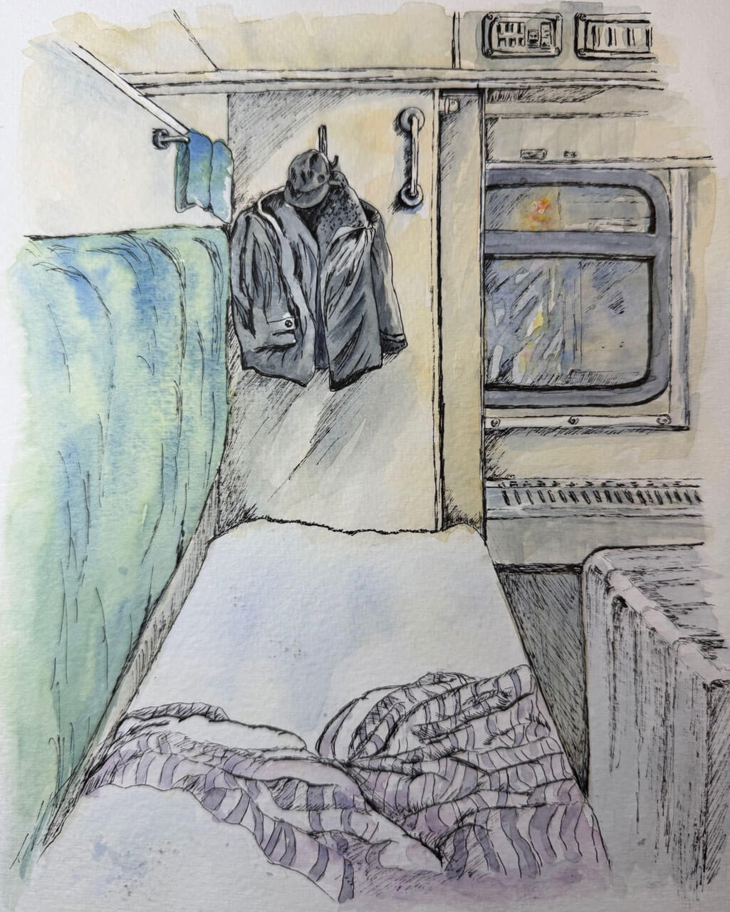 氷点下の深い闇に車輪の音が響き、深夜特急が動き出した。ポーランドの西の端、ヘイム駅から国境を越えて500キロ余り東へ。ウクライナ鉄道が誇る寝台列車は暖房が装備され、枕元に電源もあって快適だ。揺られ続けて14時間、朝焼けのキーウ駅に到着した。