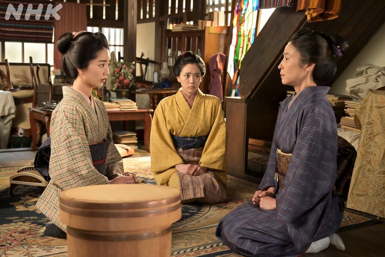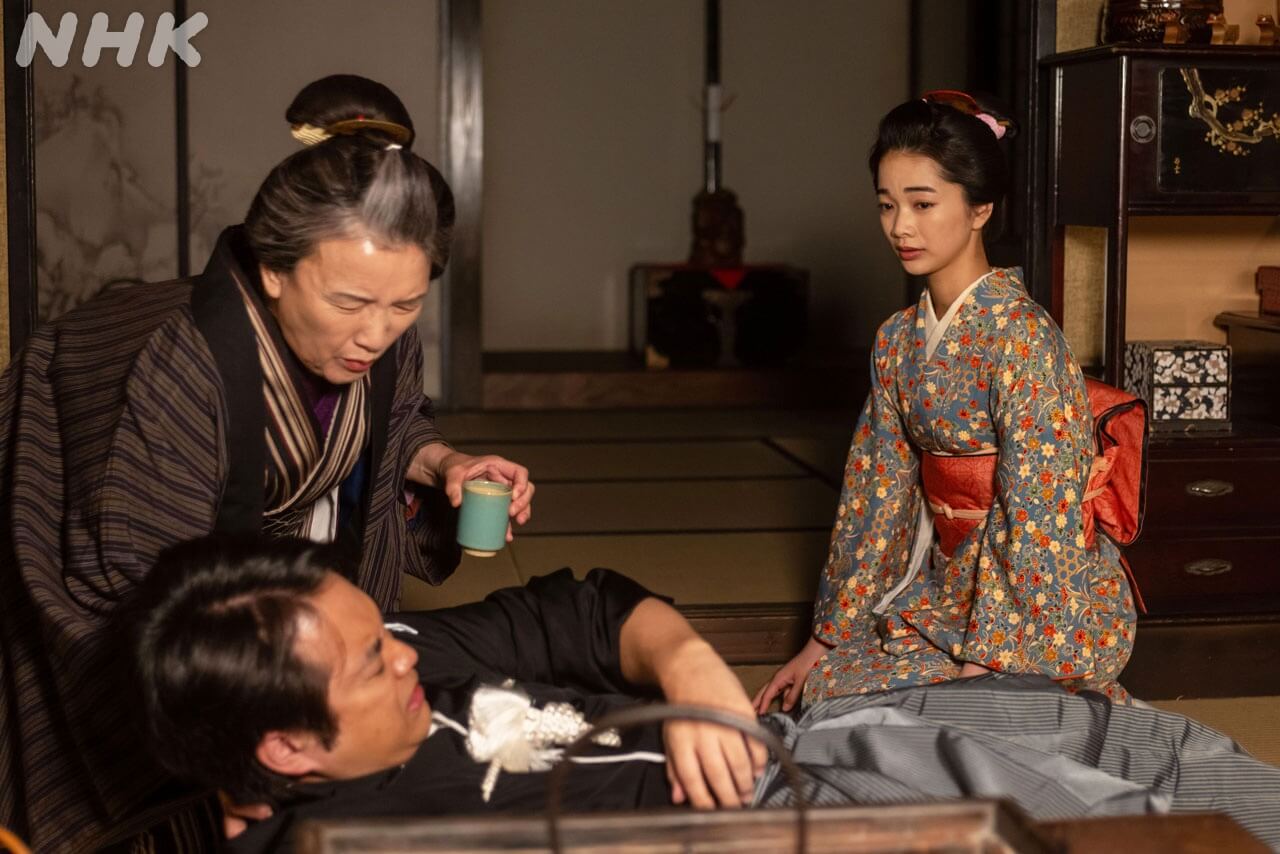 まず、ひとりめの主人公が元家老の娘、一ノ瀬りん。演じるのは見上愛。おっとりのんびりした性格で、優しくて人望の厚い父(北村一輝)と、なぎなたの名手でTHE・ブシムス(武士の娘)然とした母(水野美紀)のもとに育った。幼馴染の虎太郎(小林虎之介)と思い合っていたものの、父がコロリ(コレラ)で亡くなり、金持ちと結婚するしかなくなる。