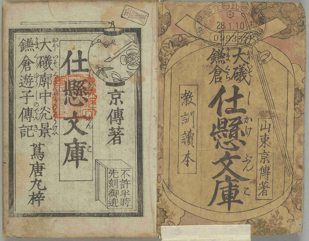 それにもかかわらず、蔦重は、『錦の裏』の序文に「極」の改印を入れ(同作品で改印のないものもあります)、また、『仕懸文庫』には、「教訓読本」と銘打った袋を付けて出版しました(下図)。