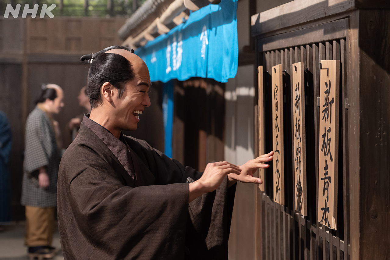 なお改印は、浮世絵には多くの場合で見られるようになりますが、黄表紙については、なぜか西村屋与八(演:西村まさ彦)や村田屋治郎兵衛(演:松田洋治)など一部の版元のものにしかなく、しかも寛政3年から数年しか見られないという特徴があります。