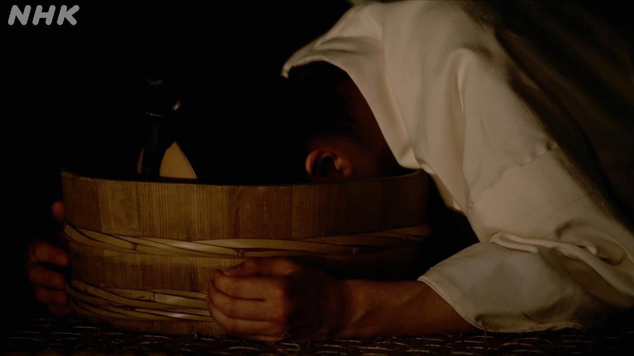 息も絶え絶えの状態で、豆腐の入った桶に顔を突っ込むという戯作者プライド。蔦重だったらきっとわかるはず……と。ふざけたり茶化したりもできない、不自由で息苦しい空気を「豆腐の角に頭をぶつけて死ぬ」ことで笑い飛ばして払拭したかったのだと。春町の悔しさと矜持に思わず号泣。