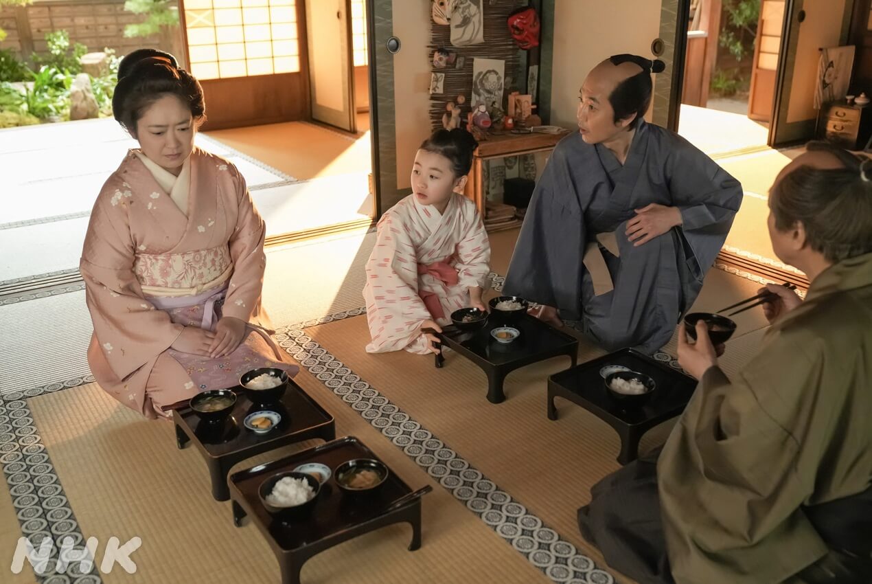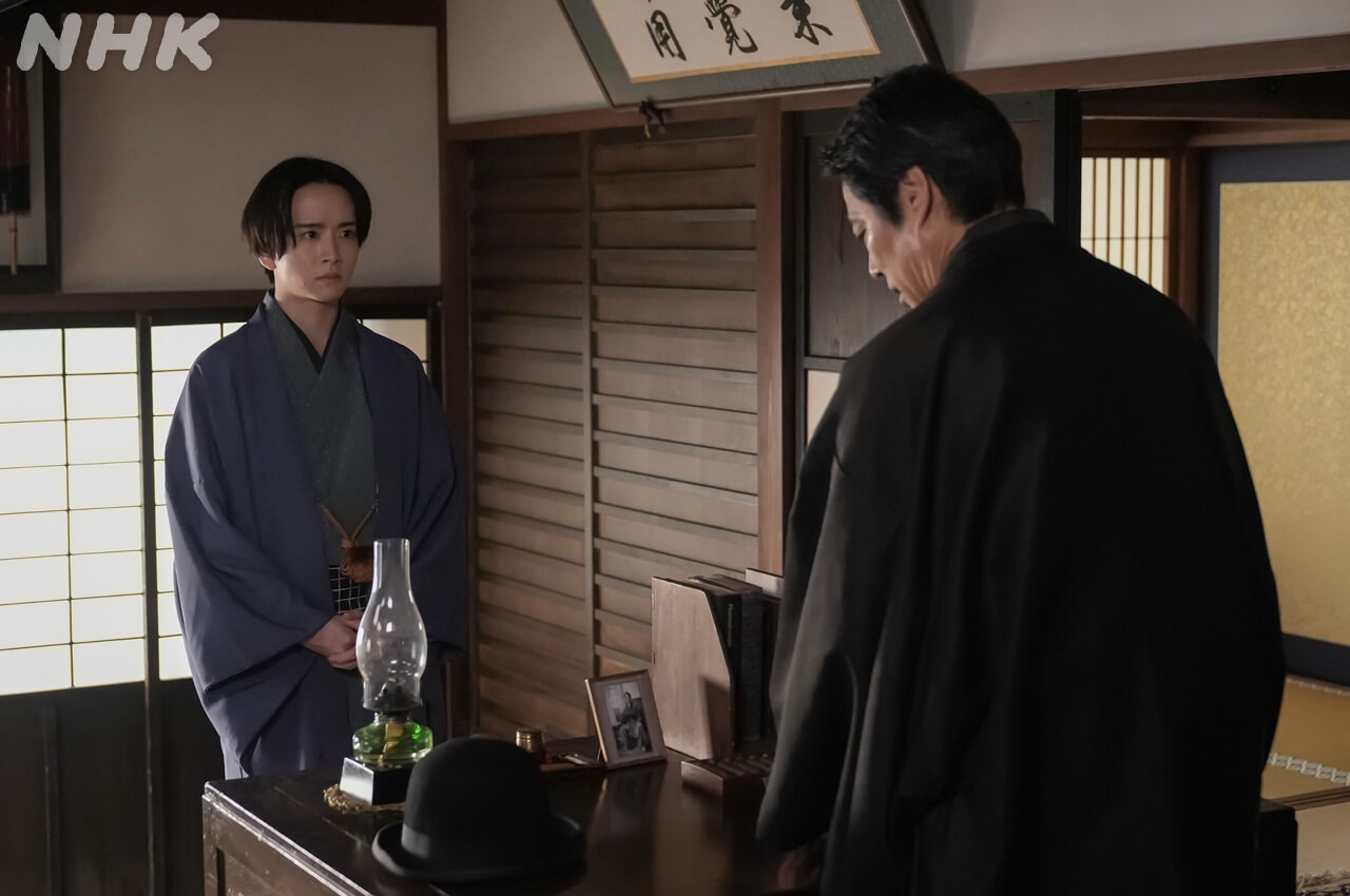 雨清水家には長男・氏松(安田啓人)と三男・三之丞(板垣李光人)がいる。次男は他界したようだが、氏松が家督を継ぎ、織物工場の経営はうまくいってると思いきや! 出奔! 多額の借金をしたまま氏松が出奔! しかも織物の値は爆下がりで経営難、傳は金策に走るも病に倒れ……って、雨清水家が猛スピードで傾いていくではないか。くすっと笑える武家の後始末では済まされず、これから物語全体に波及するであろう困窮の不穏な気配が漂ってきた。喜劇と悲劇、平穏と不穏、「ほっこり」と「まさか?!」の緩急が巧みな展開に、すっかり夢中だ。