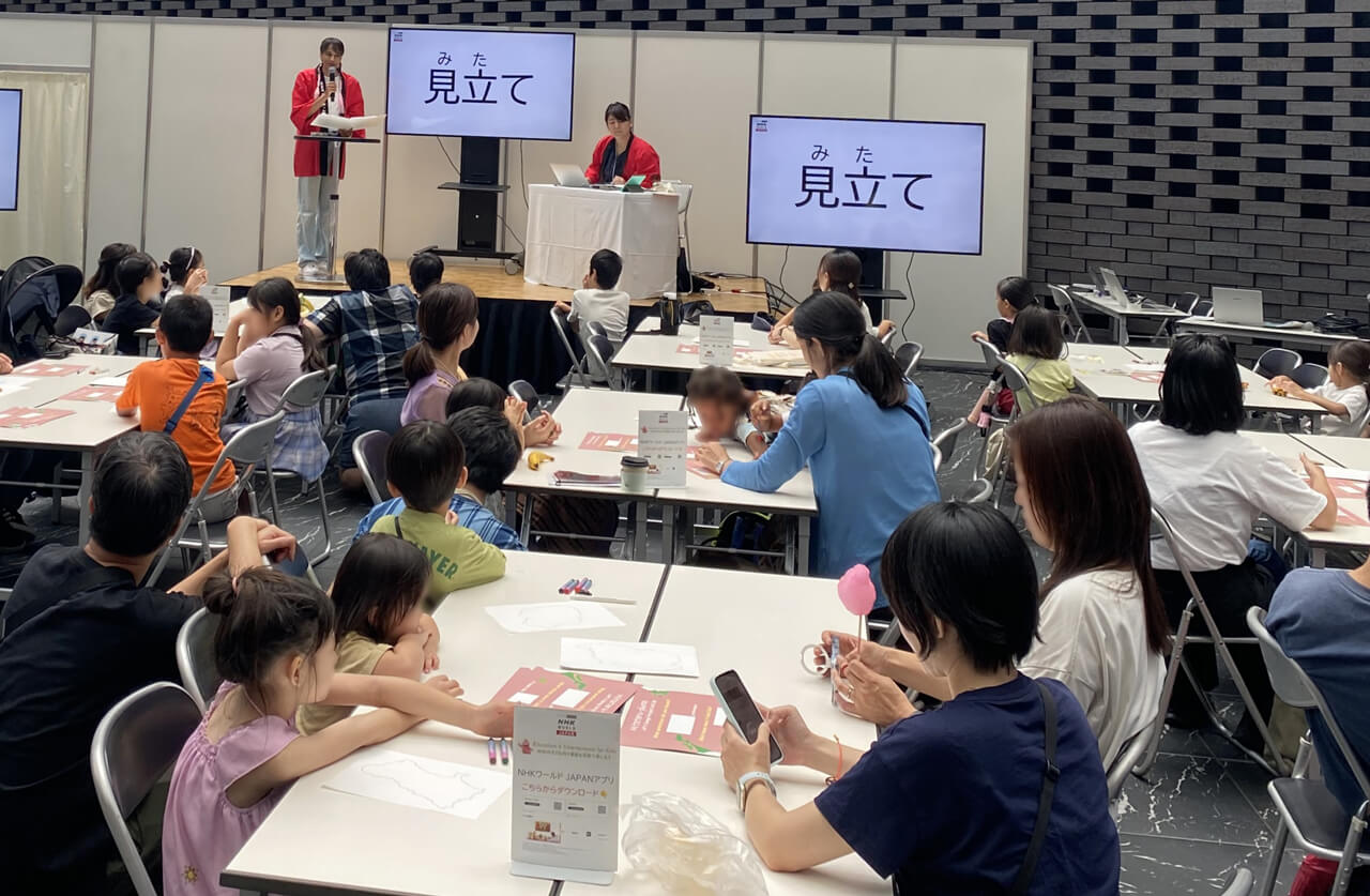 2025年9月27日(土)~28日(日)に開催された国際協力のイベントで、親子向けのワークショップを行いました。タイトルは「Let’s Find the Fun with NHK WORLD-JAPAN」。子どもたちが大勢参加し、英語を使って創造力を刺激する、楽しい体験になりました。(NHK財団はNHK国際放送局と共にこのイベントの運営を担当しました)