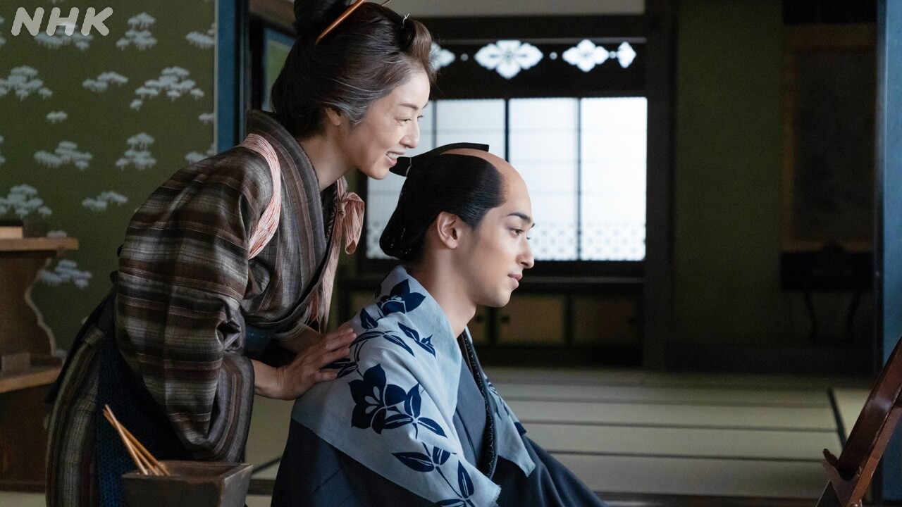 蔦重が新しい本を引っ提げて、尾張の書物問屋へ向かう朝。髪結いのおつよさんが蔦重に声をかけて、髪を結い直す場面。もうじわじわと母の余命を感じさせる構図ね。「父と母は夫婦喧嘩した挙句、色に狂って、蔦重は捨てられた」のではなく、質の悪い借金を作った父は蔦重を守るために吉原の駿河屋に預けたことを告白したおつよさん。蔦重は幼い頃に想像していた話よりもいい話だとつぶやく。