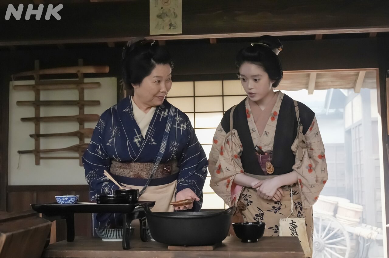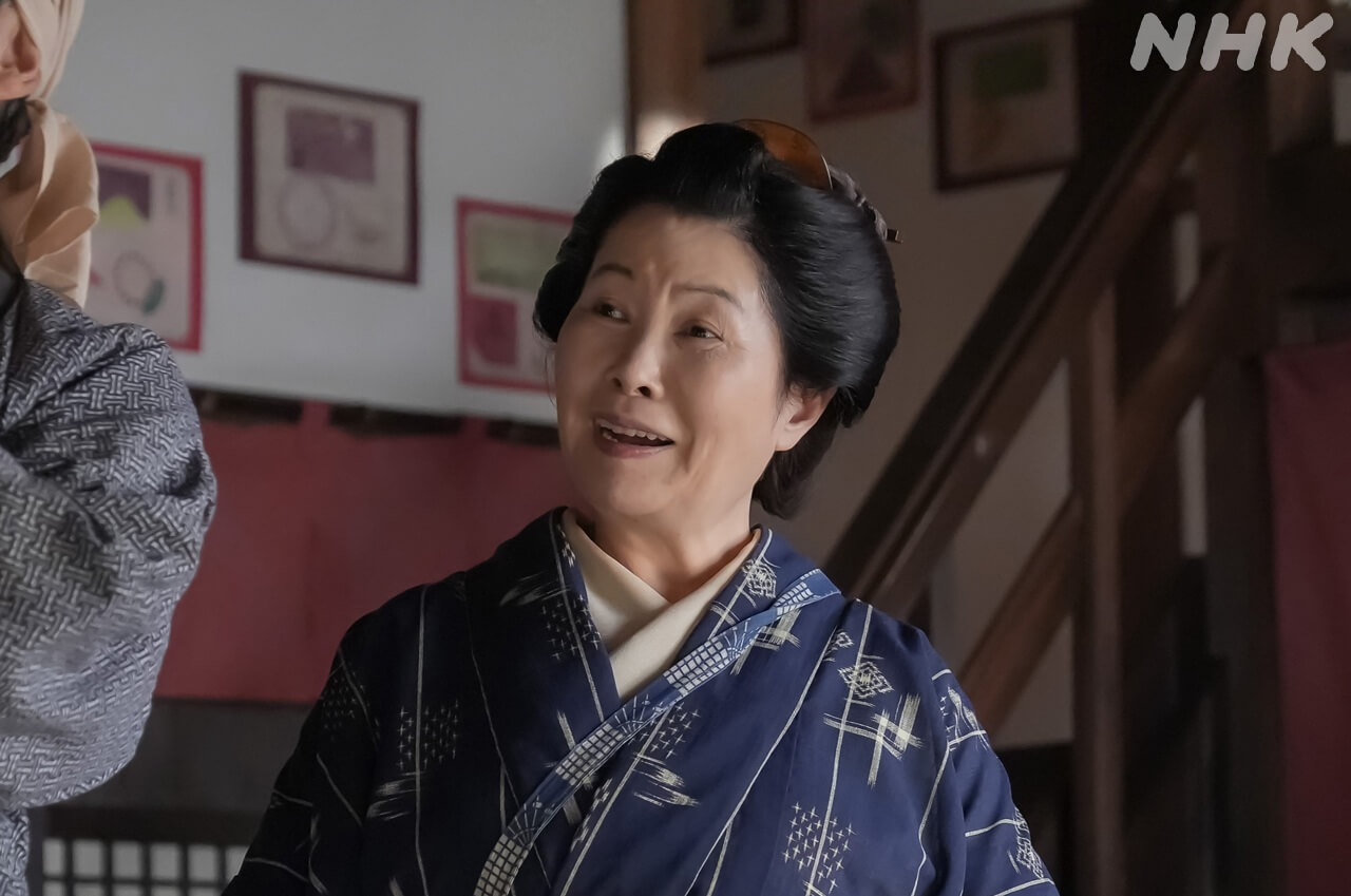 ツルはおトキちゃん(髙石あかり)がシジミを売りに来る花田旅館の女将です。おトキちゃんに対しては、まるで自分の子供のような気持ちもあるんだろうなあという気がします。