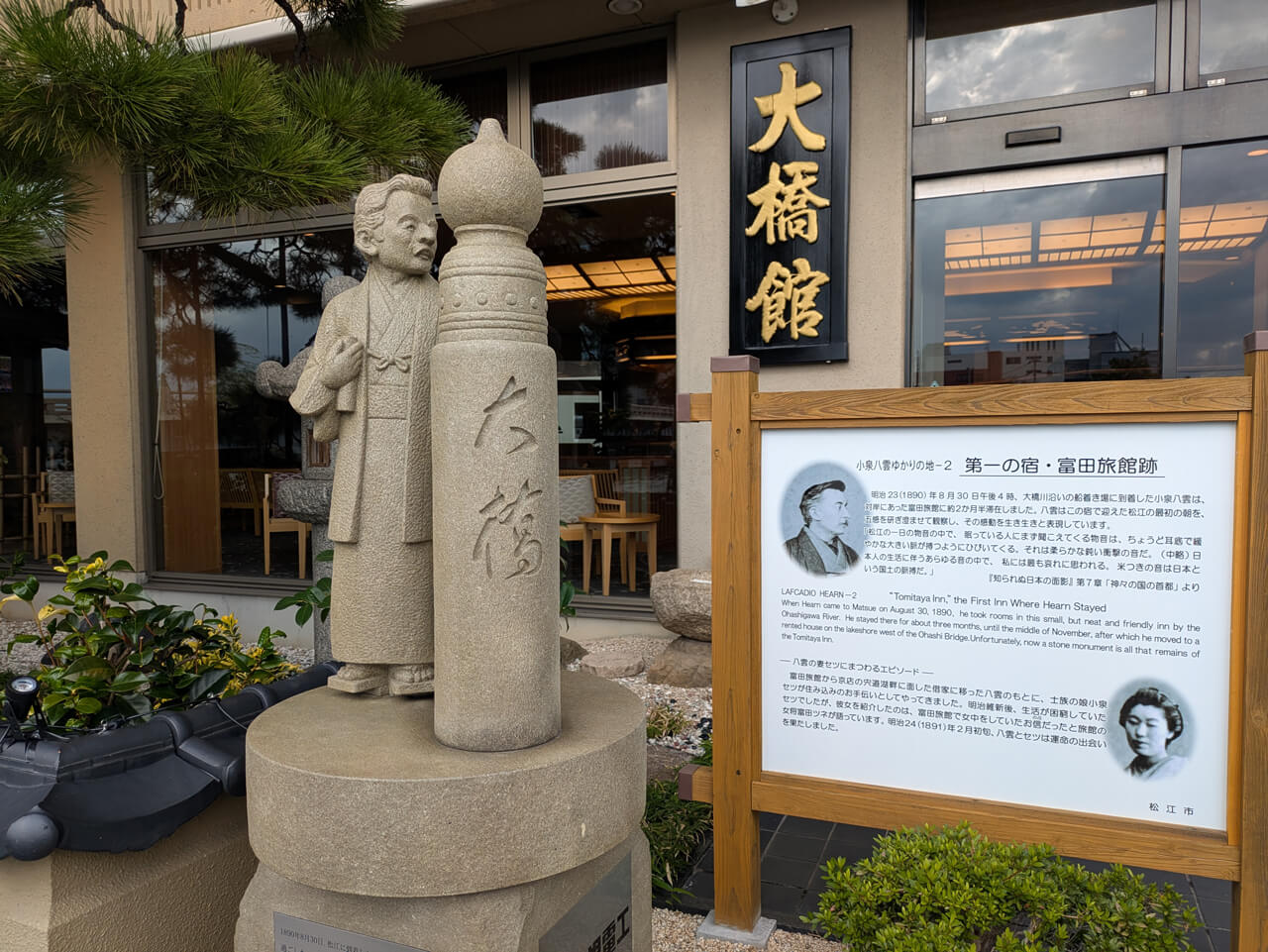 残念ながら、富田旅館自体は昭和6年5月に起きた末次大火により焼失し、一旦は再建されるも廃業。しかし、その跡は隣接していた旅館「大橋館」に受け継がれ、セツと八雲の時代の空気を今に伝えています。