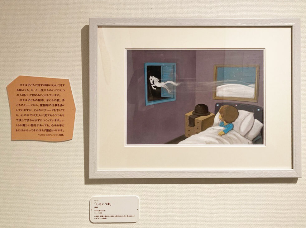 ほかにも、絵本『さよならジャンボ』『しろいうま』などの原画も展示しています。希望を描いたやなせさんの作品原画をじっくりと楽しめる機会です。