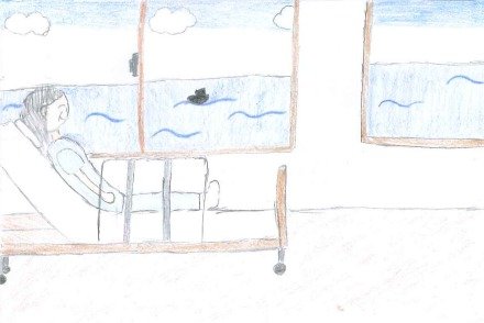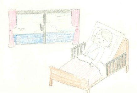 病院の九階の個室で母が窓から見る景色は空だけ。ある日「船が見える」との 呟つぶやきに私も母の横で寝て同じ目線で見ると、なるほど、空は海でした。