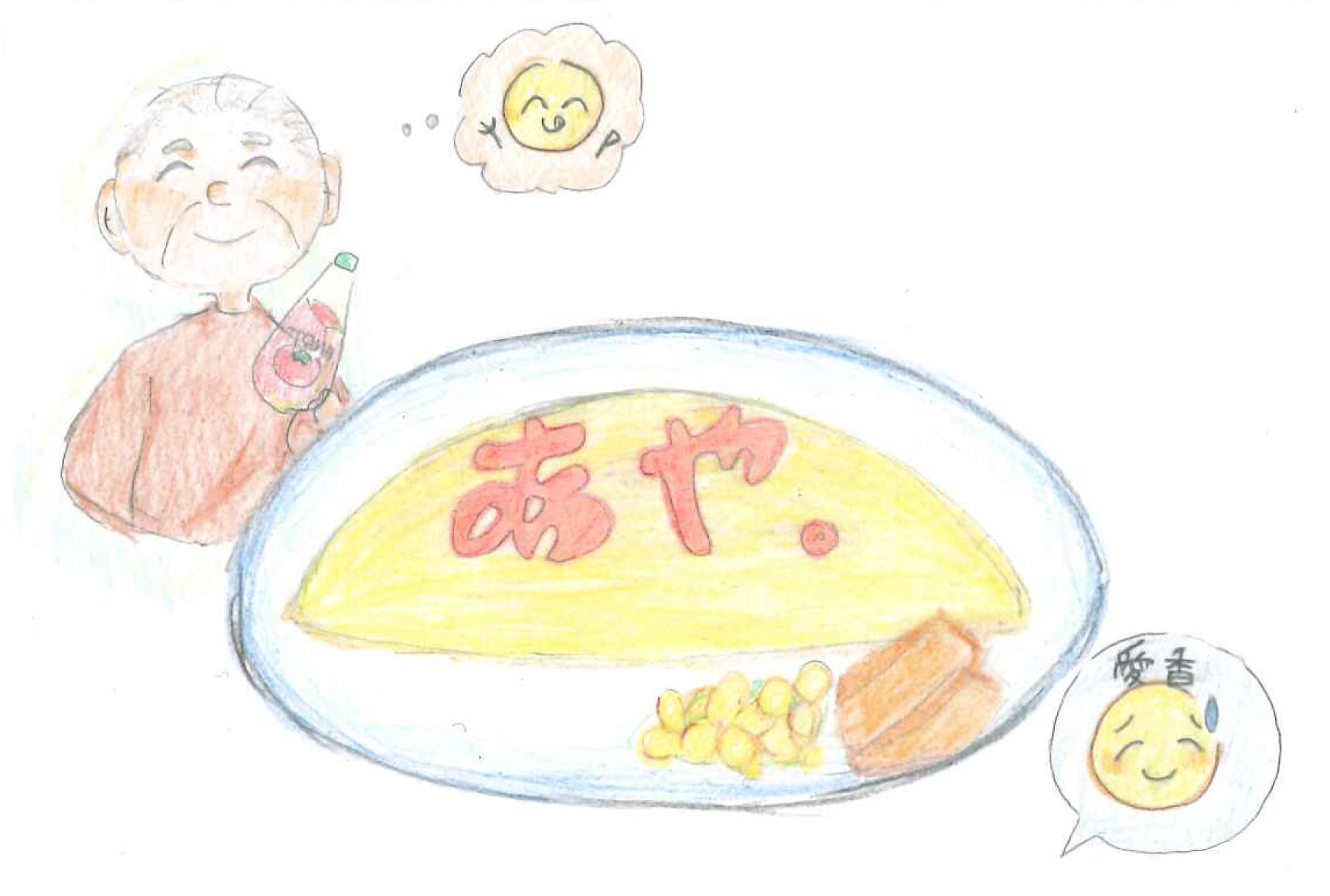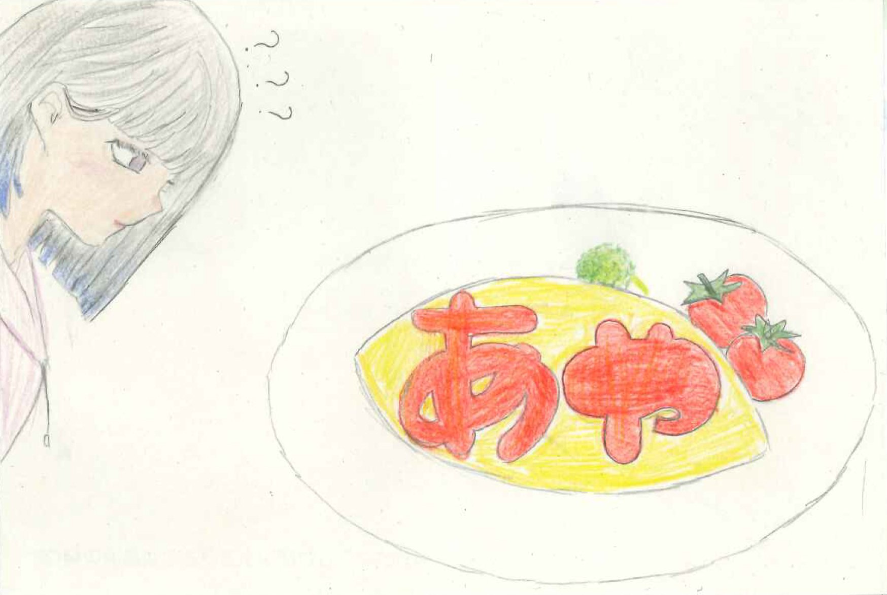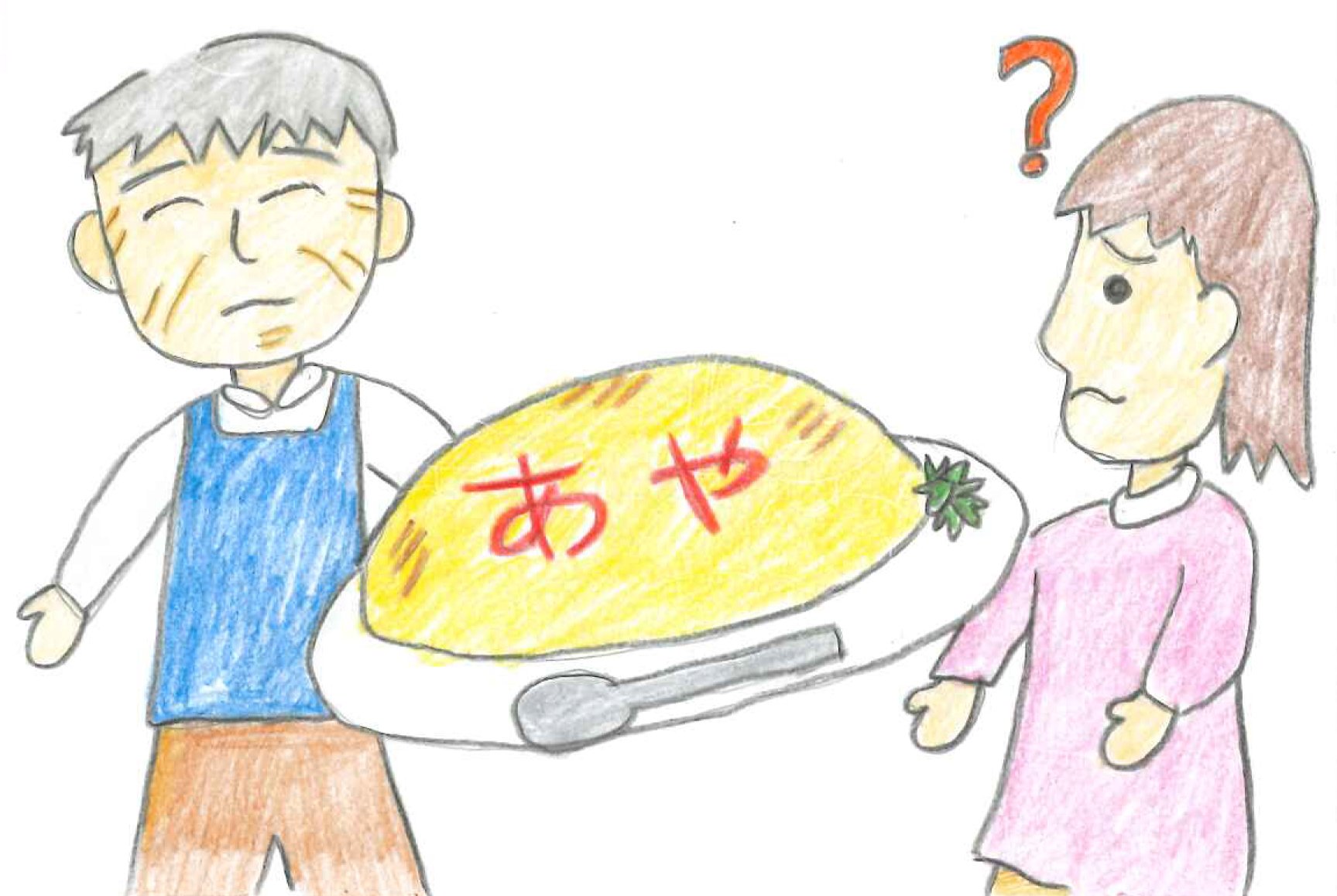 私が小さな頃からおじいちゃんはよく名前付きのオムライスを作ってくれていました。しかし歳をとると共にオムライスに書かれた名前が違い、老いを感じる瞬間を短歌にしました。