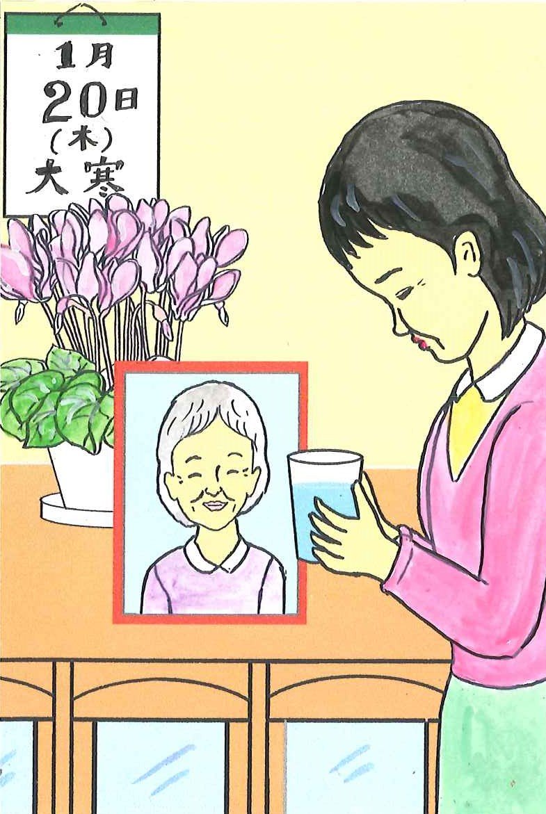 28歳で、戦争未亡人となった母は一人で私を育ててくれました。私も家を継ぎずっと母と一緒に暮らしてきました。臨終に近い頃、水が欲しいと言うのであげたら言った言葉です。