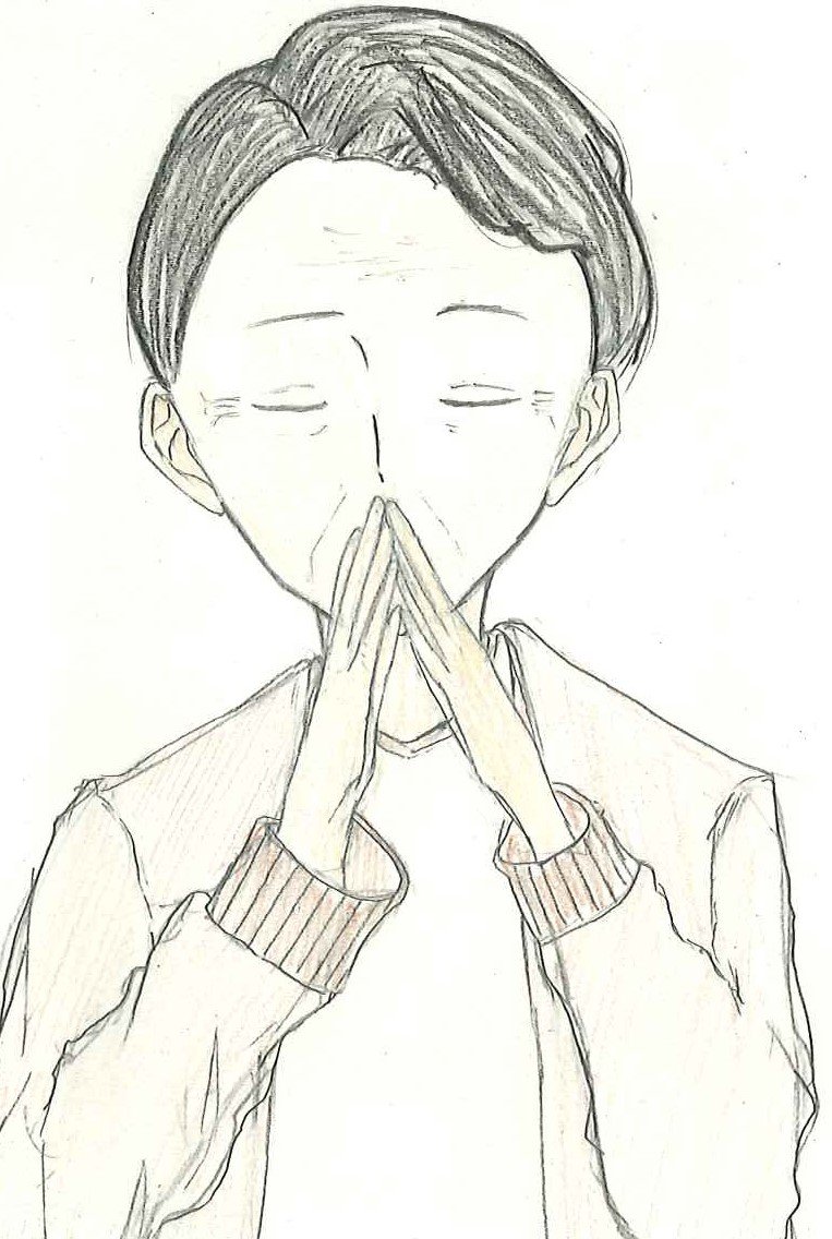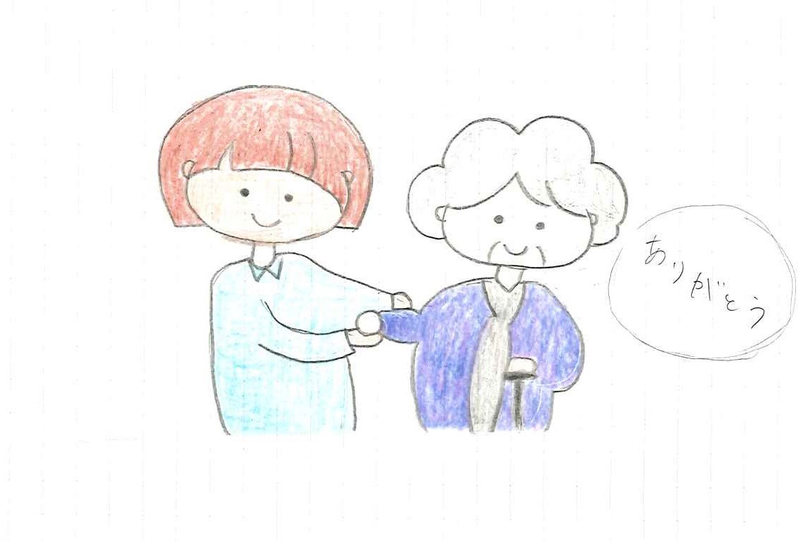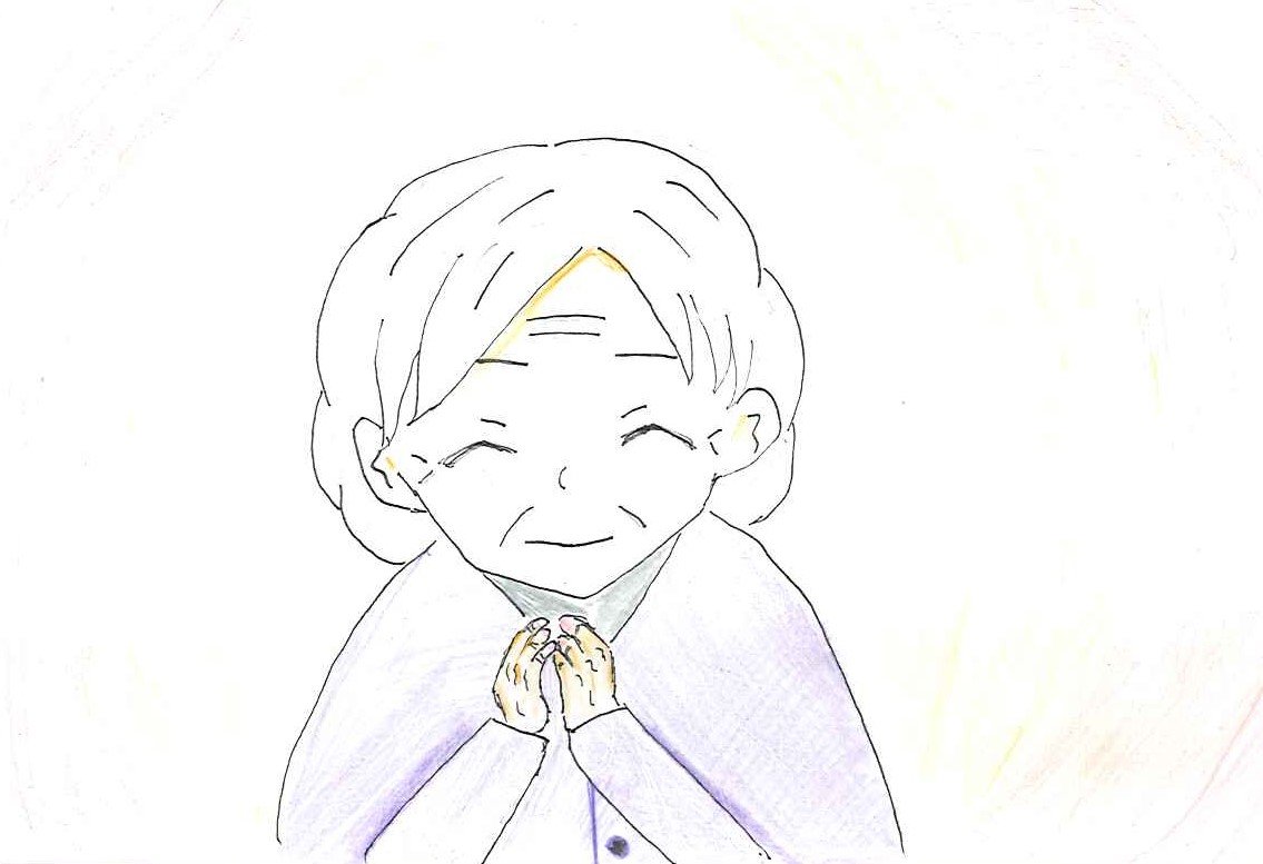 介護実習で1人のお婆さんが両手を合わせてもったいないといつもお礼を言ってくださいます。とても感謝されている気持ちが伝わってくるということを表現しました。