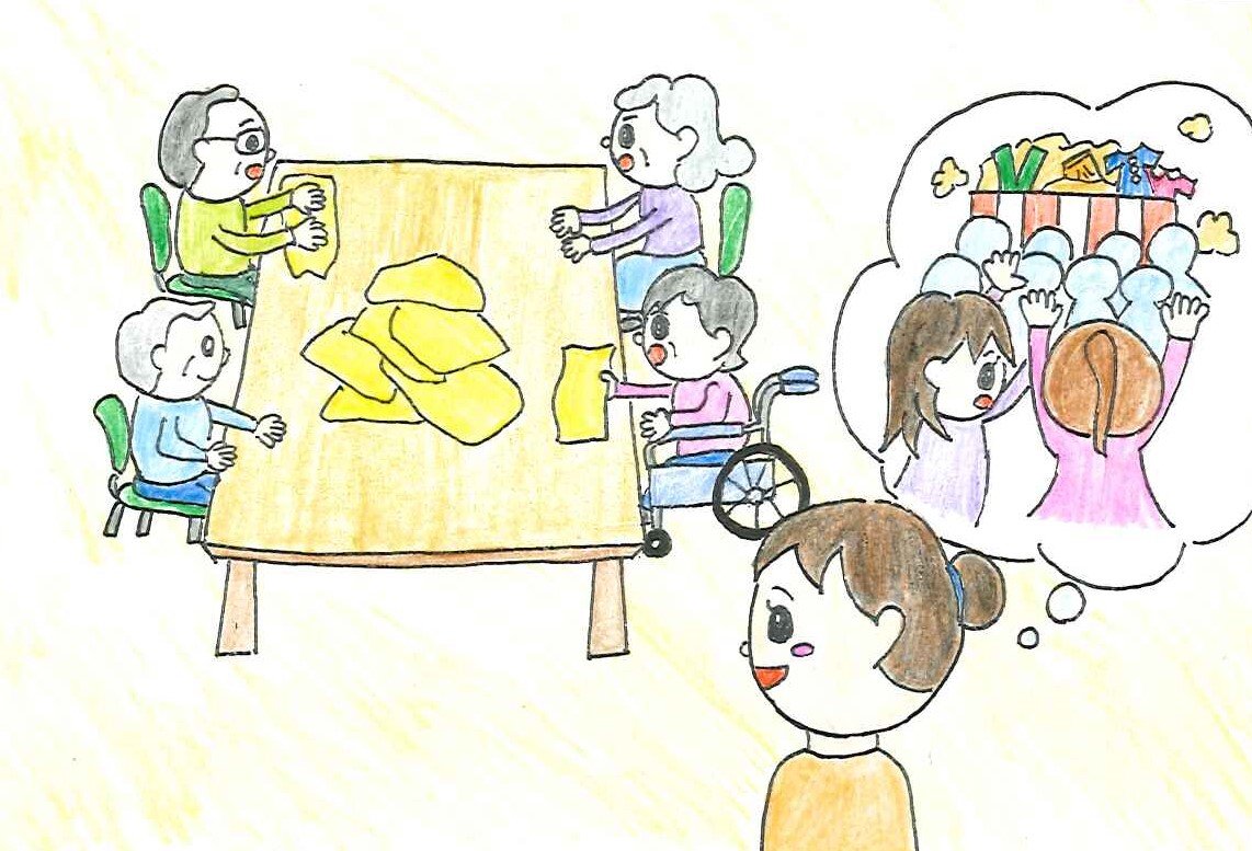 私が勤めている介護施設では、利用者様に洗濯物を畳んでいただくのですが、畳みたい方が大勢おられ、争奪戦になります。バーゲンをほうふつとさせる光景です。
